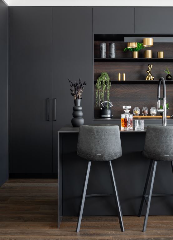את ההשראה לעיצוב הדירה שאב המעצב מהעיצוב האירופאי העכשווי אליו נחשף תוך כדי העבודה על פרויקטים שהוא מוביל בברלין. הוא בחר לחפות את רצפת הבית בפרקט עץ אלון מעושן שמשלב ממד טוסקני, חמים וכפרי אל מול הקווים הישרים, פלטת עץ האקליפטוס עמה בחר לחפות את הנישה במטבח שוברת את המסה הכהה והדרמטית וכך גם האקססוריז המעוגלים עשויים פליז.