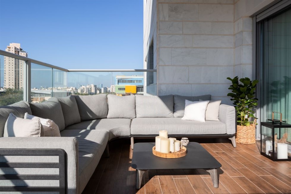 בני הזוג אוהבים מאוד לארח משפחה וחברים. לשם כך תכנן עבורם המעצב מערכת ישיבה פינתית שפונה לכיוון החלל הציבורי ובכך נשמר הקשר בינה לבין אלה השוהים בפנים.